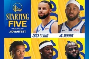 勇士首发:库里、穆迪、威尔·理查德、巴特勒、追梦格林。