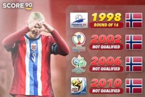 哈兰德和挪威队距离重返世界杯决赛圈只是一步之遥了,上一次他们在世界杯亮相还是1998年。这个赛季都目前为止,“魔人布欧”各项赛事已经打进30球,他们会成为美加墨的黑马么?