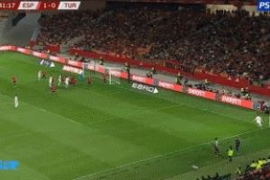 居尔为土耳其破门,这是西班牙本届世预赛的第一粒丢球